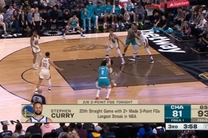 库里连续20场比赛至少命中2记三分史上最长