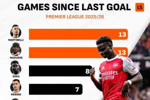体育资讯01月19日讯 尽管阿森纳目前在英超以7分优势领跑,但根据LiveScore统计,阿森纳队内一众攻击手已经遭遇至少3轮的联赛球荒,多的甚至有13轮。
