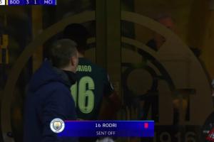 体育资讯01月21日讯 欧冠联赛阶段第7轮,曼城客战博德闪耀。61分钟,罗德里1分钟连吃2黄,被罚下。