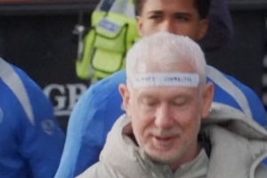 体育资讯1月21日讯 据TNT报道,切尔西理疗师麦卡洛克训练课期间头上贴着搞怪纸条。