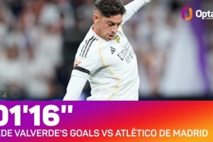 02-03赛季有统计以来皇马第二快任意球(仅次于C罗在2013年vs毕巴的任意球)