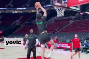开拓者队记Yovic晒出一组视频,并报道:“杨瀚森今天与吕佩尔、库克一起完成了赛前训练,强度不小,而且内容明显更偏向锋线。