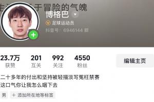张浩的社媒主页上写着:二十多年的付出和坚持被轻描淡写冤枉禁赛 这口气你让我怎么咽下