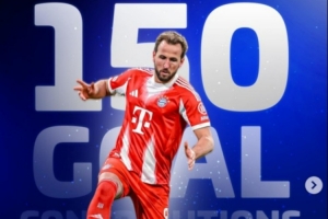 本场比赛凯恩破门,这也是他拜仁生涯各项赛事为球队直接参与的第150粒进球,用时127场比赛(120球30助)。