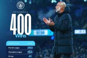 曼城官方列出了瓜帅400胜的具体分布