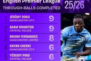 本赛季英超成功直塞榜: