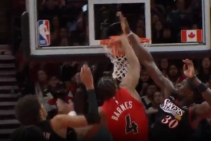 GIF-巴恩斯突破单臂举火烧天炸裂隔扣,还有慢放
